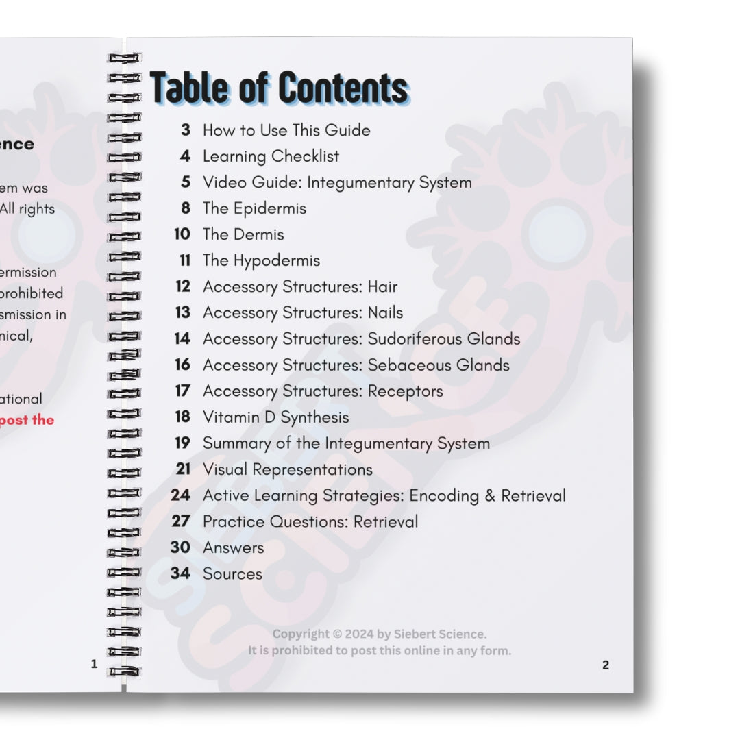 Basically, this guide provides the content you need for the Integumentary System and also teaches you strategies for how to become an expert learner of A&P. That way you can be successful on not only on your next test, but also on any A&P test you have later on.